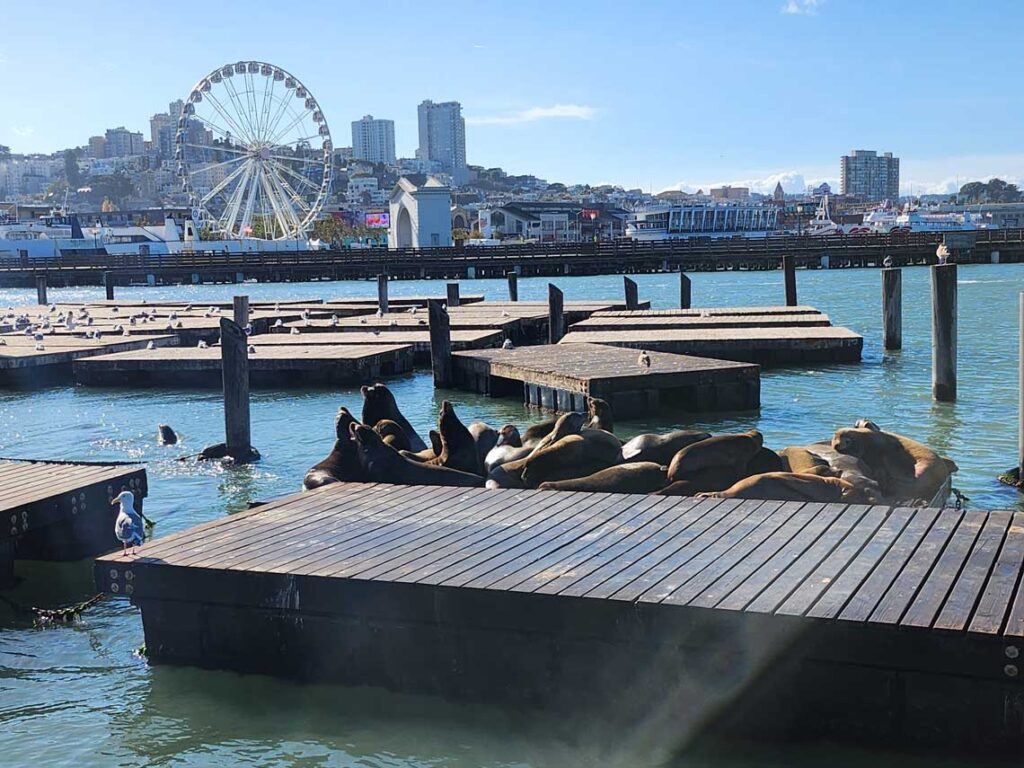 El Pier 39, que en sí mismo es toda una atracción. Alberga un atractivo tiovivo, todo tipo de tiendas, restaurantes, comida rápida, pastelerías…. Pero es también es el hogar de una colonia de leones marinos que son un auténtico espectáculo.