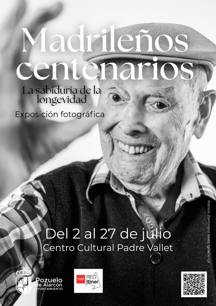 El Centro Cultural Padre Vallet de Pozuelo de Alarcón acoge hasta el 27 de julio la exposición «Madrileños centenarios. La sabiduría de la longevidad», una muestra que invita a reflexionar sobre el paso del tiempo a través de los rostros y las historias de quienes han superado el siglo de vida.